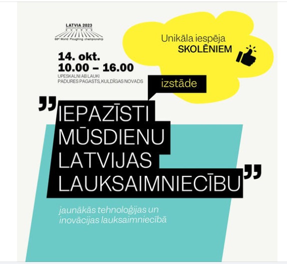 Skolēni aicināti iepazīties ar lauksaimniecības un mežsaimniecības tehniku 68. Pasaules čempionāta aršanā ietvaros Ilze Zemberga09.10.2023 Aktualitātes