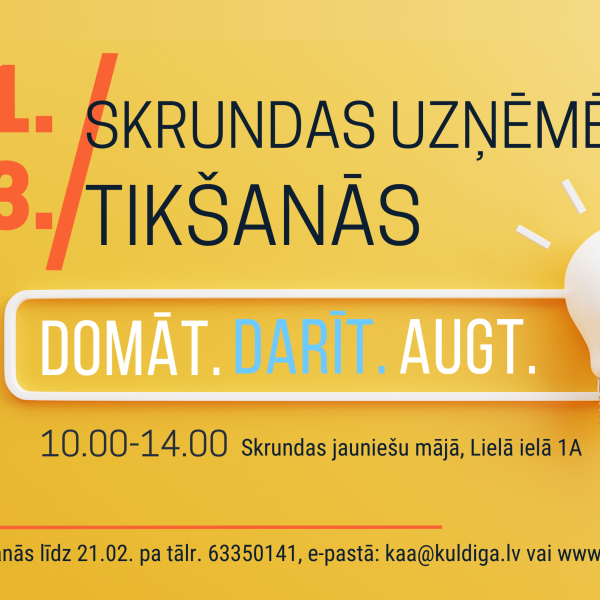 Skrundas uzņēmēji aicināti uz tikšanos “DOMĀT. DARĪT. AUGT.” Lauma Migoviča13.02.2024 Skrundas pilsēta un pagasts