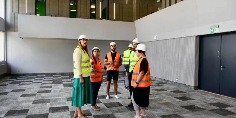 4.augustā Kuldīgas novada domes priekšsēdētāja Inese Astaševska, projektu vadītāja Madara Dravniece, Kuldīgas Centra vidusskolas direktors Krists Felš-Milbergs kopā ar būvdarbu veicēju apskatīja Kuldīgas Centra vidusskolu pirms nodošanas ekspluatācijā, kas plānota 23. augustā.