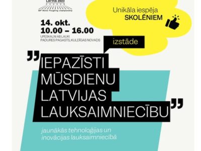 Skolēni aicināti iepazīties ar lauksaimniecības un mežsaimniecības tehniku 68. Pasaules čempionāta aršanā ietvaros