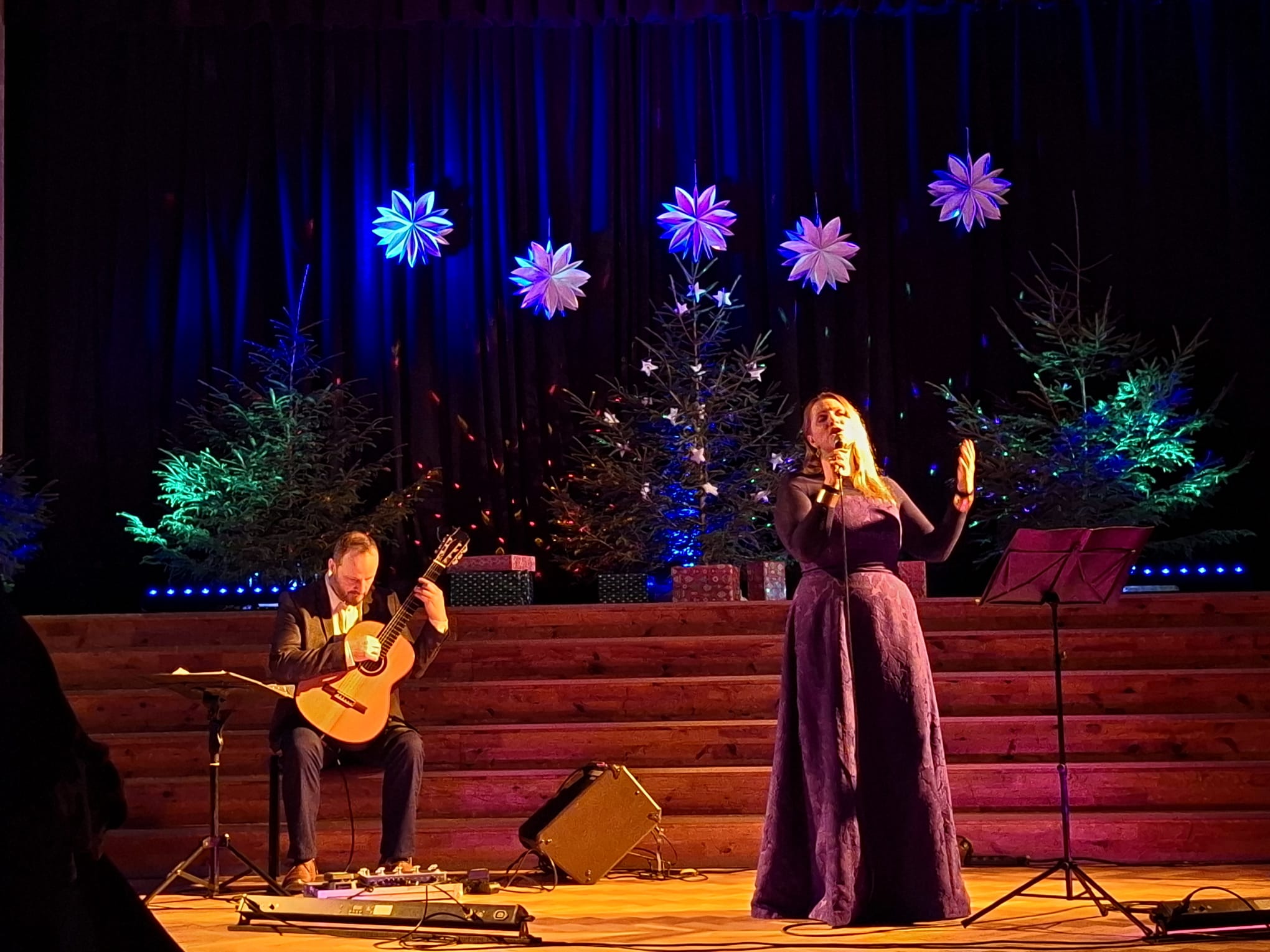 Siltu un dvēselisku noskaņu radīja Sigita Jevgļevska Pļaviņa kopā ar ģitāristu Māri Kupču, dāvājot klausītājiem mierpilnu vakaru.
