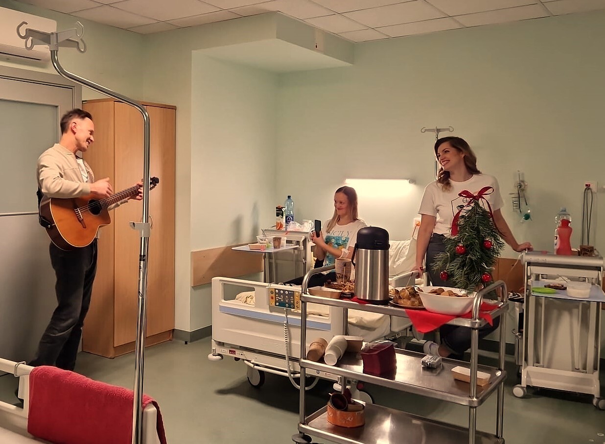 Jauku svētku atmosfēru uzbūra mūziķis Renārs Kaupers, sniedzot muzikālu priekšnesumu atklāšanas pasākumā daļā, gan dodoties kopā ar brīvprātīgajiem uz nodaļu pie pacientiem.