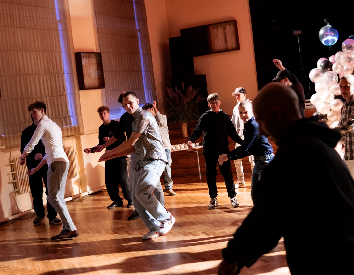 Jubilejas svinības aizritēja enerģijas un kustību zīmē, piedāvājot jauniešiem trīs jaudīgas deju meistarklases. Puiši Arvja Sprudes vadībā apguva dejas soļus “Prūšu zemē”, savukārt Sindija Sabīne Poga iesaistīja meitenes patiesi karsējošā un dinamsikā deju virpulī. Vakara ritmu noslēdza Agate Hartmane, kura apvienoja visus klātesošos kolosālā Zumbas ritmā, radot milzu kustības prieku un smaidus.