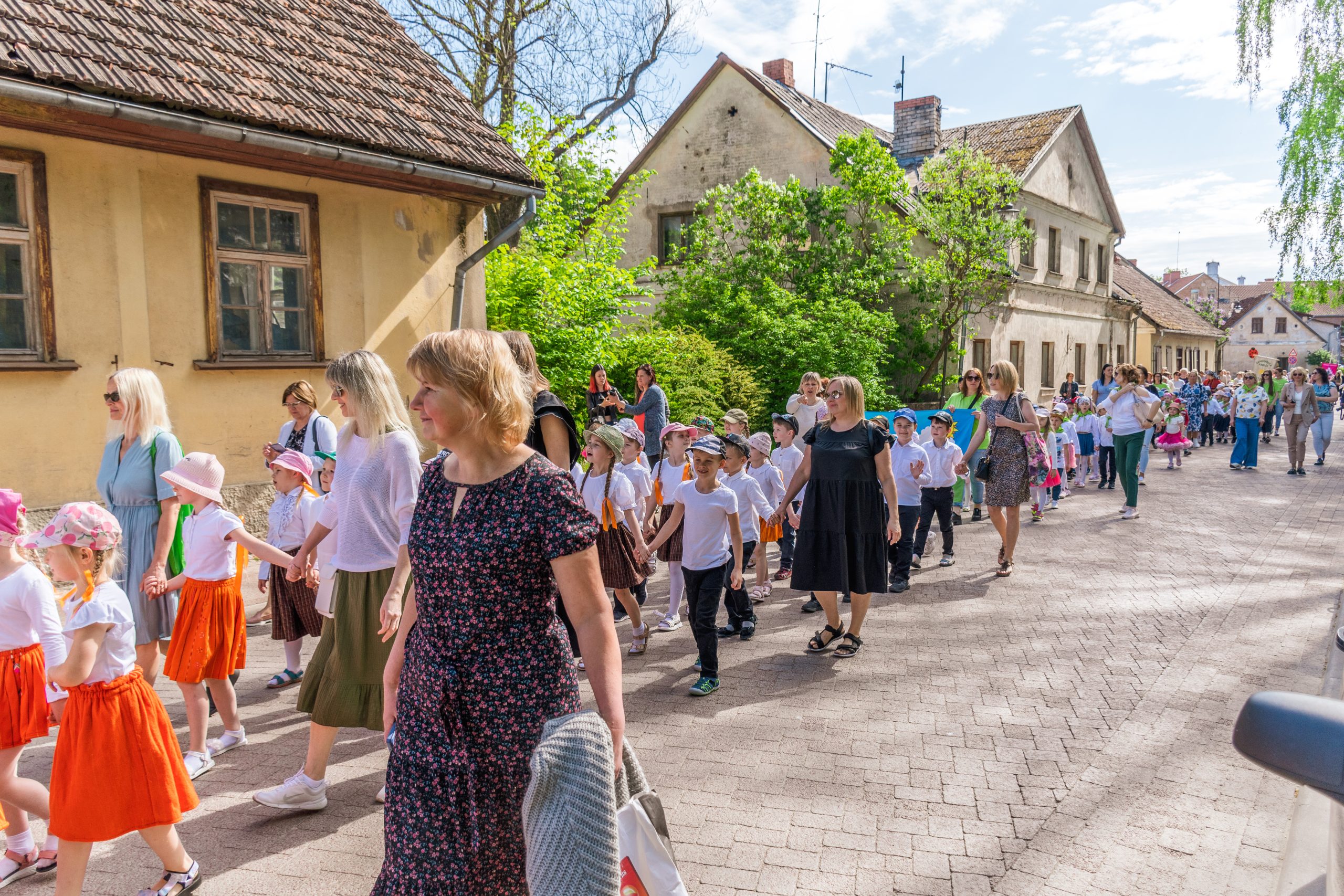 Mazie dziesmu un deju svētki tika ieskandināti ar svētku gājienu. Tas sākās no Liepājas ielas gala (no kajenīcas “Kursas Zeme”), tālāk dalībniekiem virzoties pa Liepājas, Smilšu un Pētera ielām, bet galamērķis – Pilsētas estrāde. Mazos dziedātājus un dejotājus gājienā atbalstīja arī prāvs vecāku un līdzjutēju pulks. Priecīgo brīdi, atrašanos un uzstāšanos uz Pilsētas estrādes skatuves, varēja izjust vairāk nekā 400 jaunie dziedātāji un dejotāji.