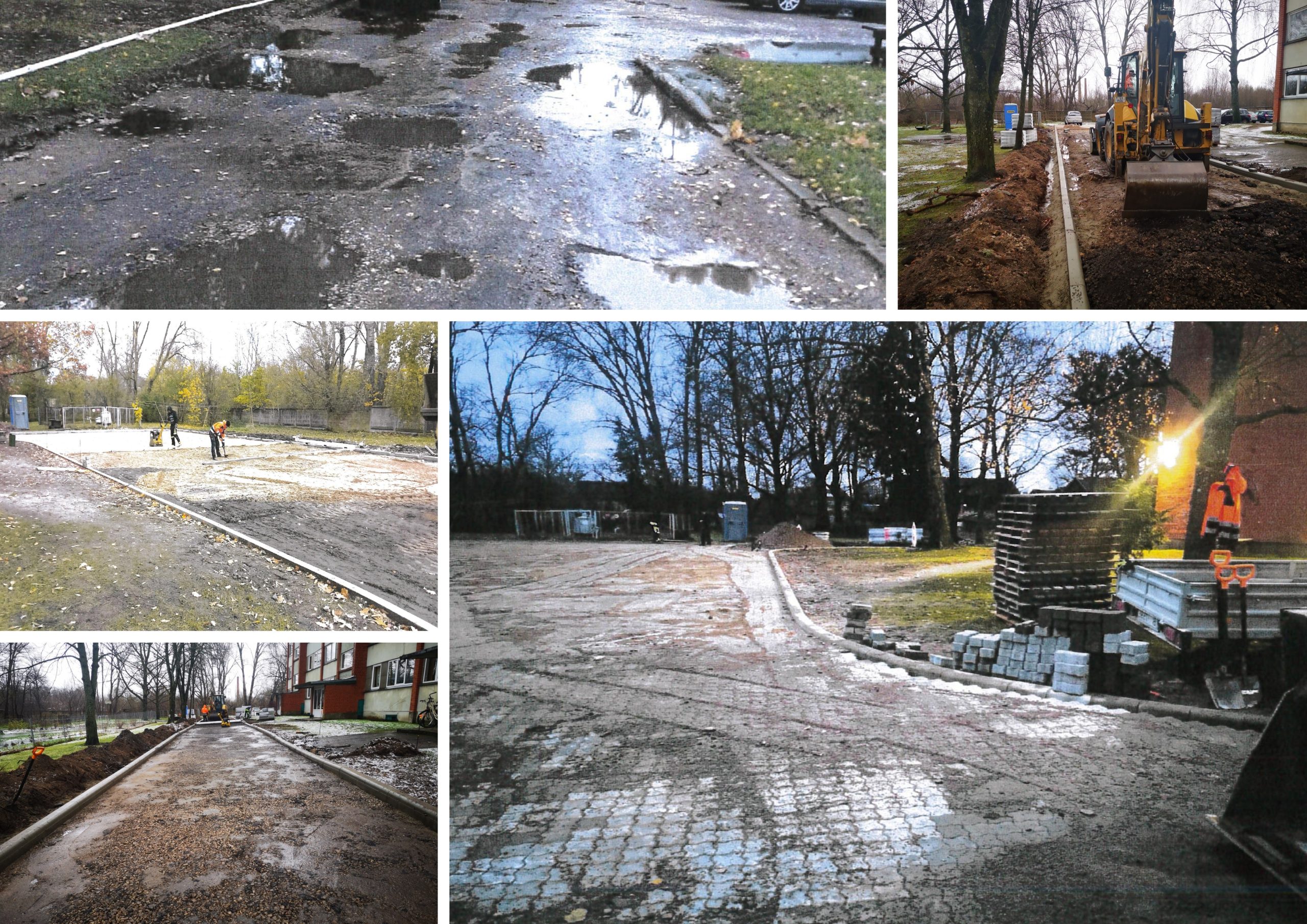 - Skrundas ielā 18, Kuldīgā. Pabeigts labiekārtošanas pirmais posms – nomainīts laikā gaitā nolietojušais asfalta segums pret betona bruģa segumu, izbūvētas jaunas betona apmals. Šajā daudzdzīvokļu mājas pagalmā darbi atsāksies tikko būs atbilstoši laikapstākļi.