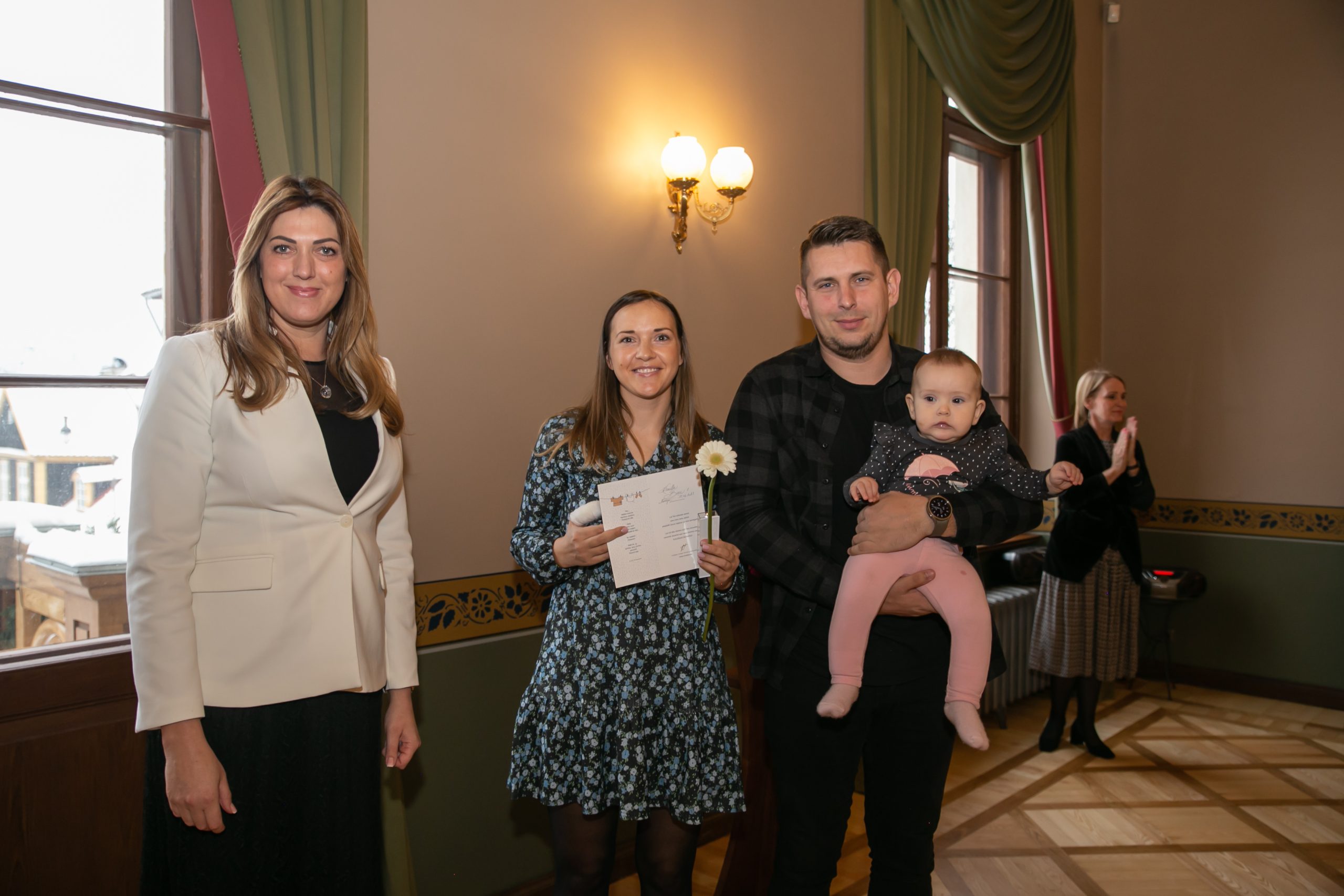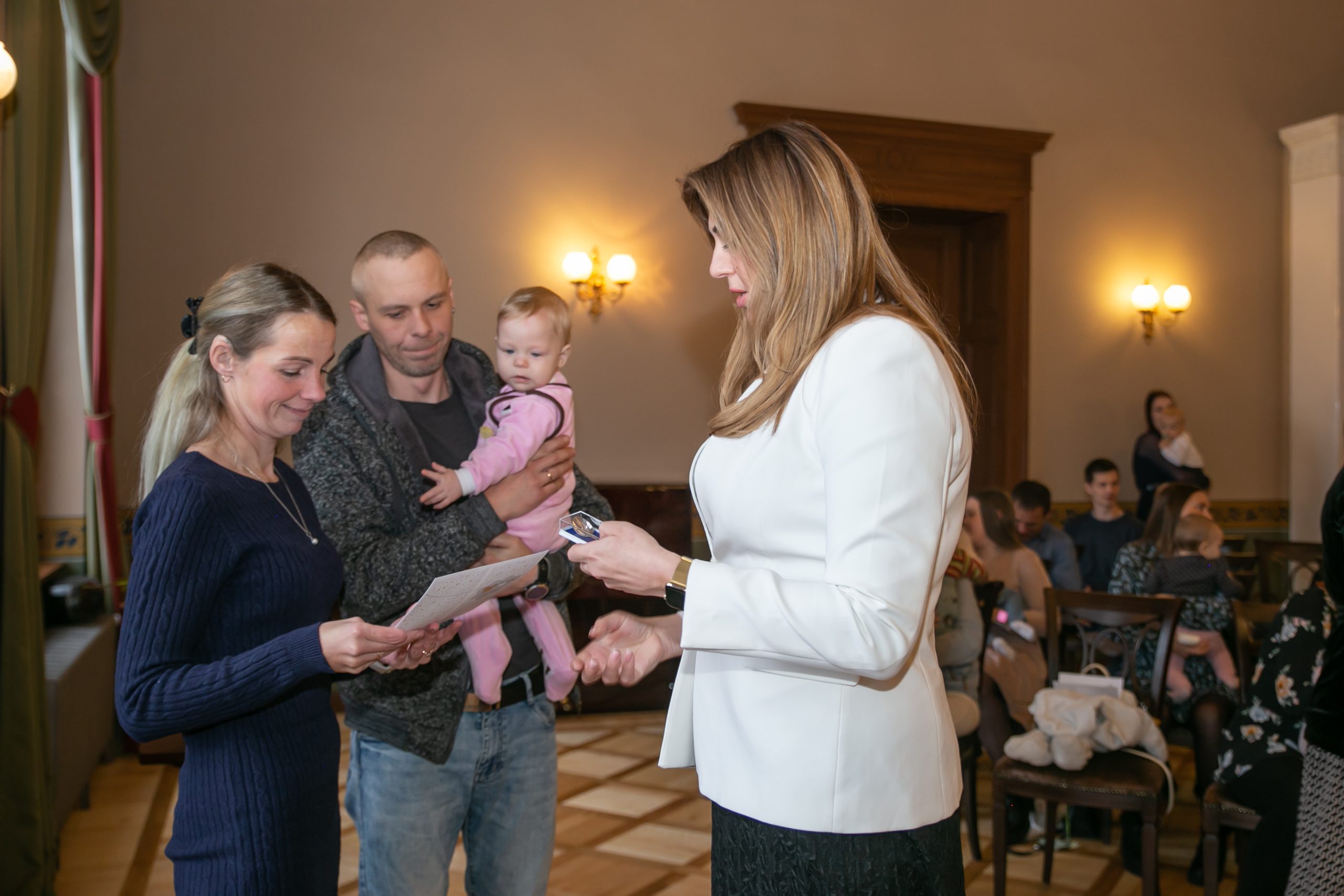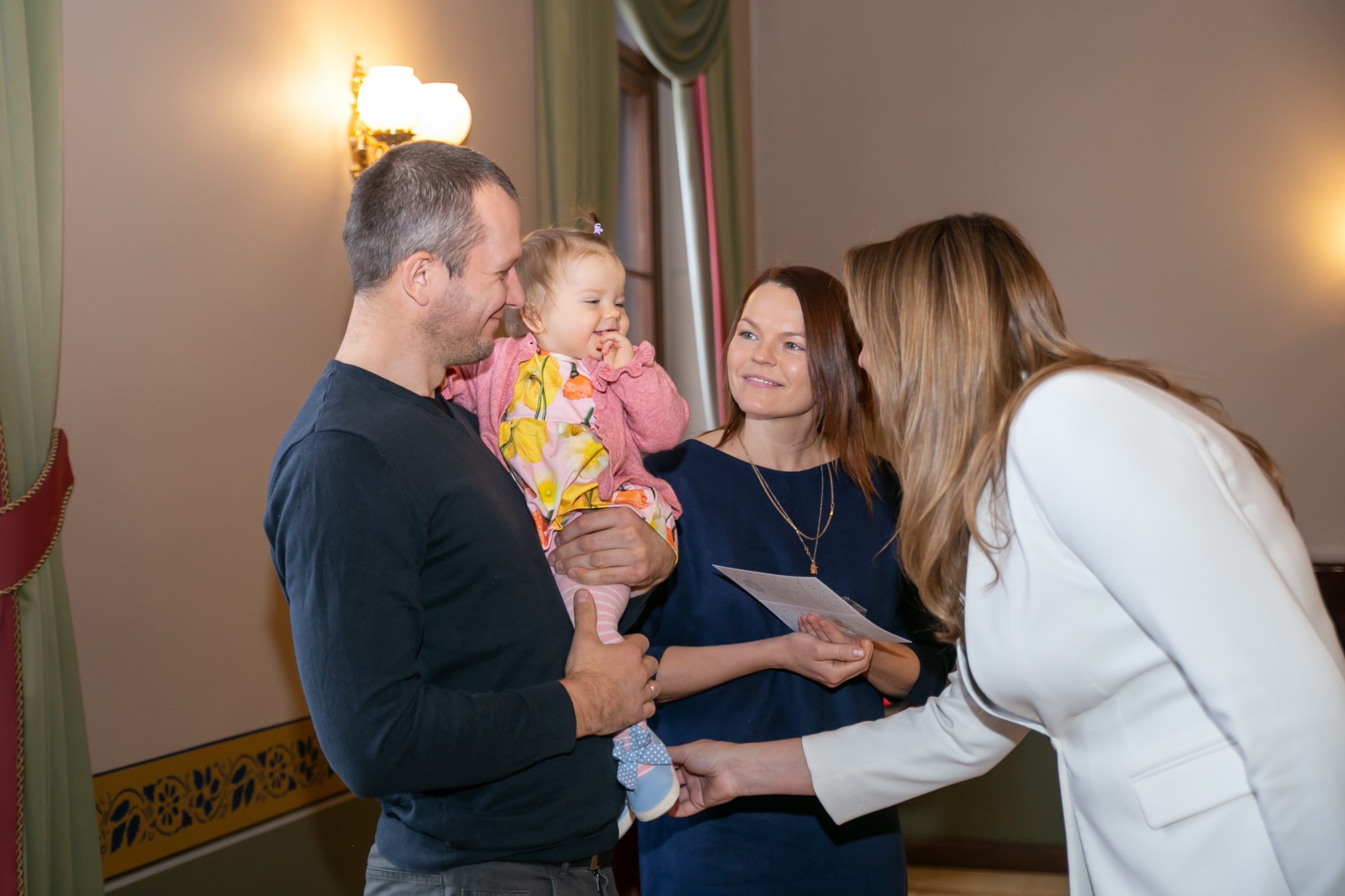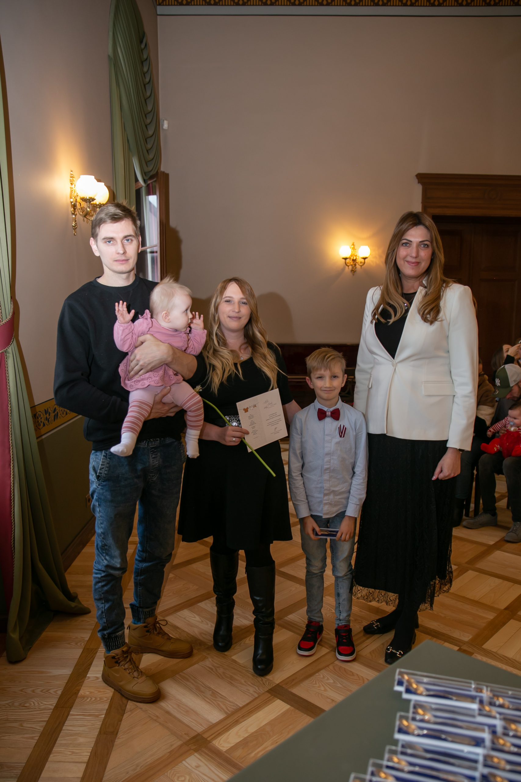 Šonedēļ Kuldīgas novada Domē viesojās paši jaunākie Kuldīgas novada iedzīvotāji – viņi kopā ar vecākiem, brālīšiem un māsiņām bija atnākuši pēc piemiņas dāvaniņas – sudraba karotītes, kas vienmēr atgādinās par dzimto vietu. Šī gada pirmajos sešos mēnešos Kuldīgas novada dzimtsarakstu nodaļā reģistrēti 139 bērniņi – 68 meitenes un 71 zēns, kas ir par 22 mazuļiem vairāk nekā pērn šādā pašā laika posmā.