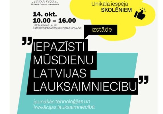 Izstāde “Iepazīsti mūsdienu Latvijas lauksaimniecību” ir unikāla iespēja skolēniem tuvplānā redzēt jaunākās tehnoloģijas un inovācijas lauksaimniecībā. Viņiem būs iespēja izpētīt plašu vismodernāko iekārtu un tehnikas klāstu, ko izmanto mūsdienu lauksaimniecības un mežsaimniecības praksē. Izstāde norisināsies 14. oktobrī no plkst. 10.00 līdz 16.00. Kā arī tās dienas ietvaros norisināsies virkne citu interesantu aktivitāšu – Pasaules čempionāta sacensības zālājā, Traktoru parāde, Novadu garšas,