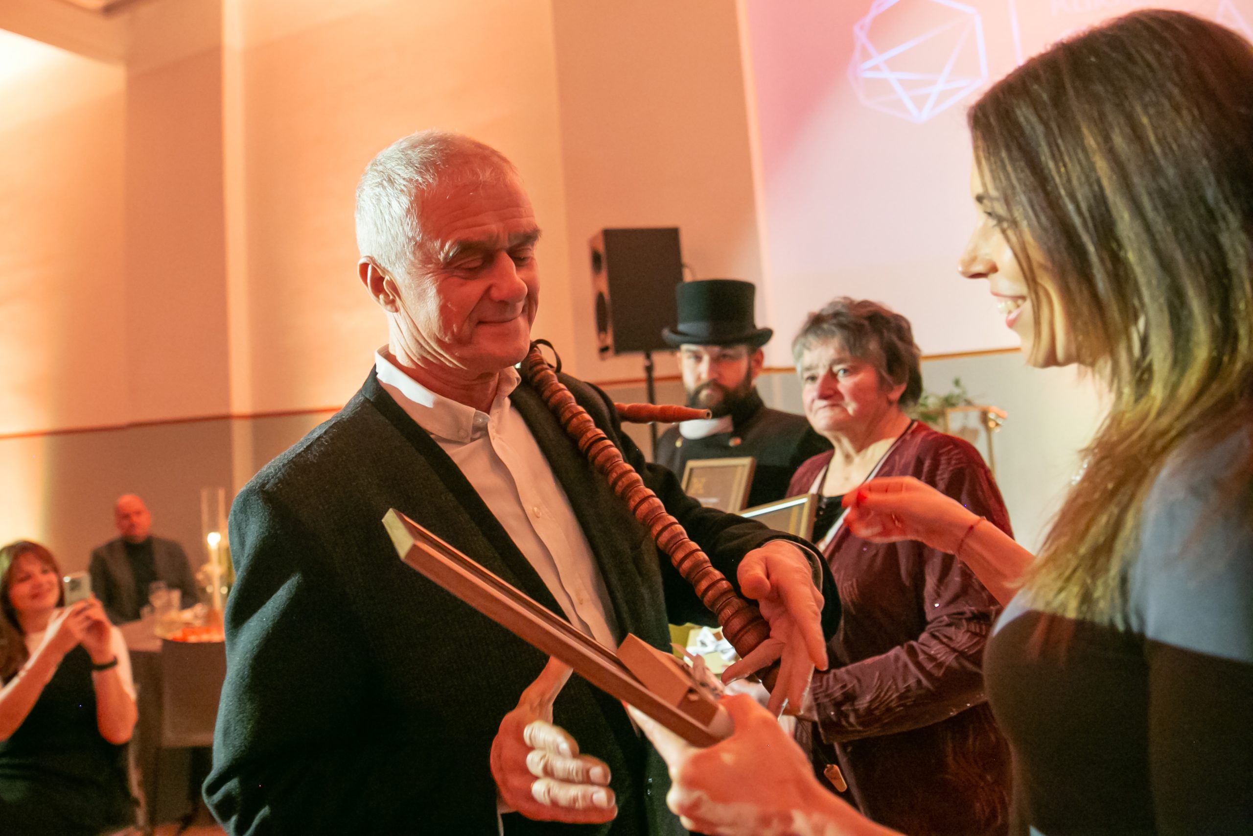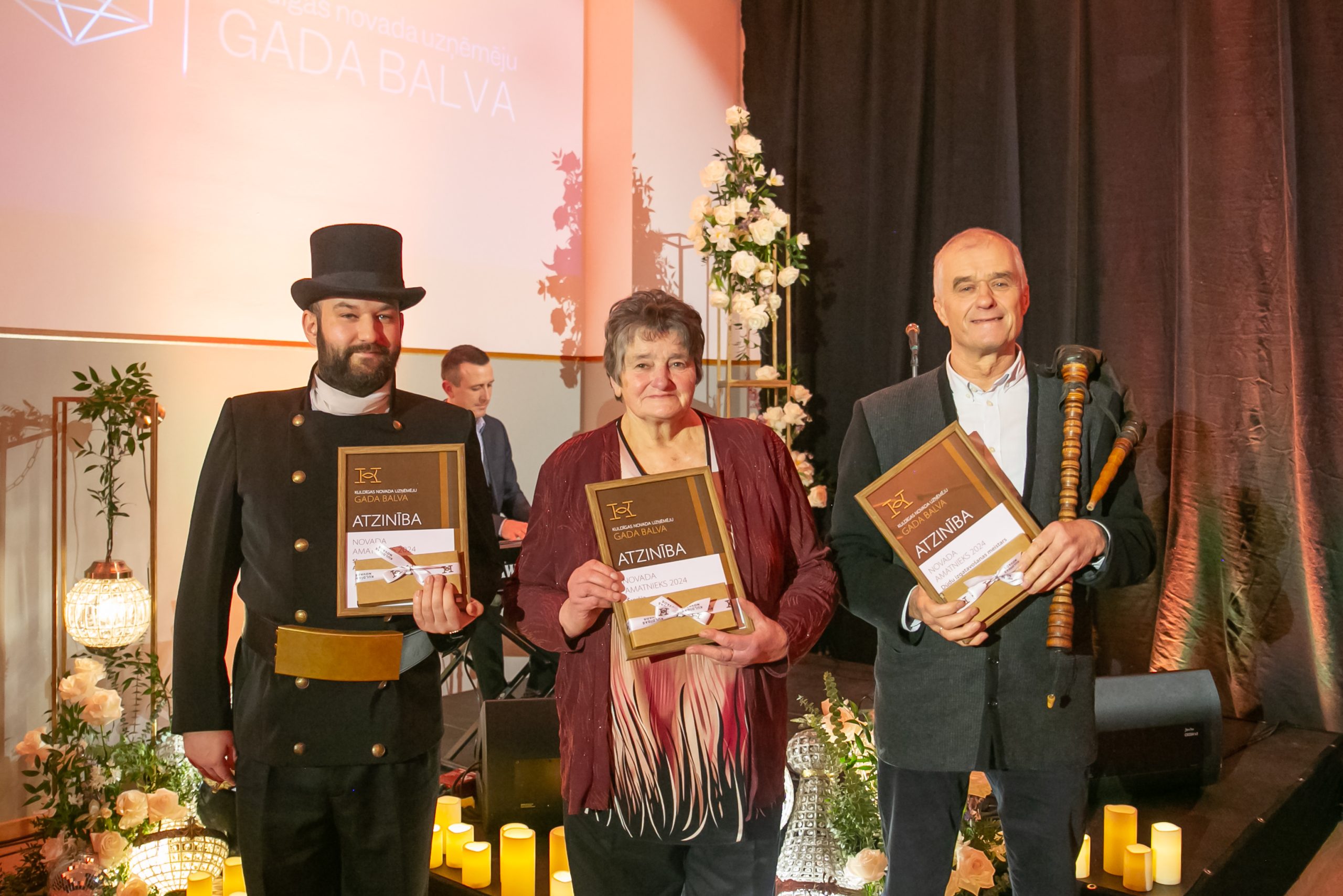 Nominācijā “Novada amatnieks 2024” godināti ļaudis, kas rūpējas par sava amata tradīciju uzturēšanu, attīstīšanu un nodošanu no paaudzes paaudzē. Balvu saņēma skursteņslaucītājs Andris Ševirjovs, Vārmes pagasta šuvēja Biruta Altenburga, dūdu izgatavošanas meistars Juris Lipsnis no Alsungas.