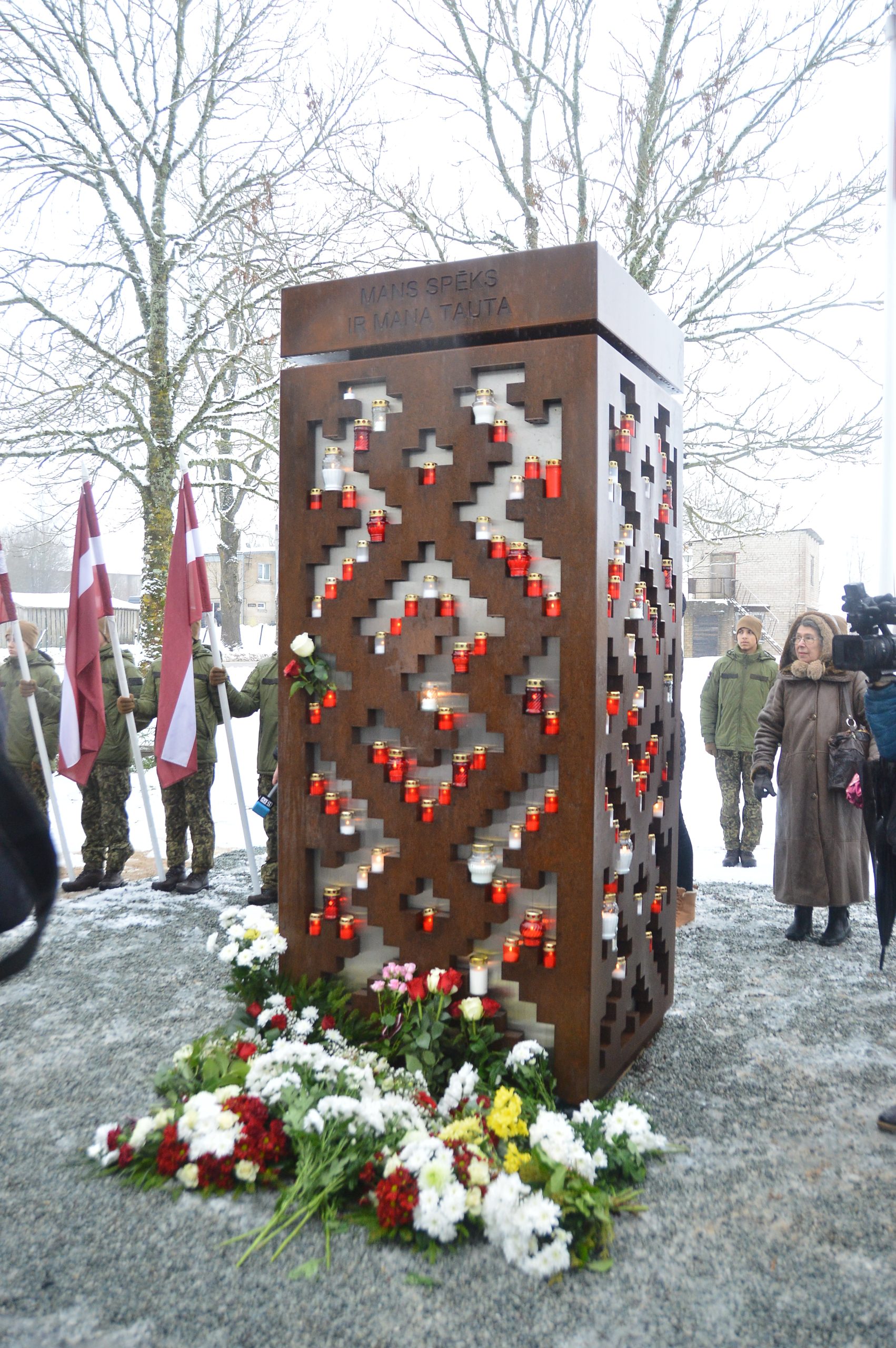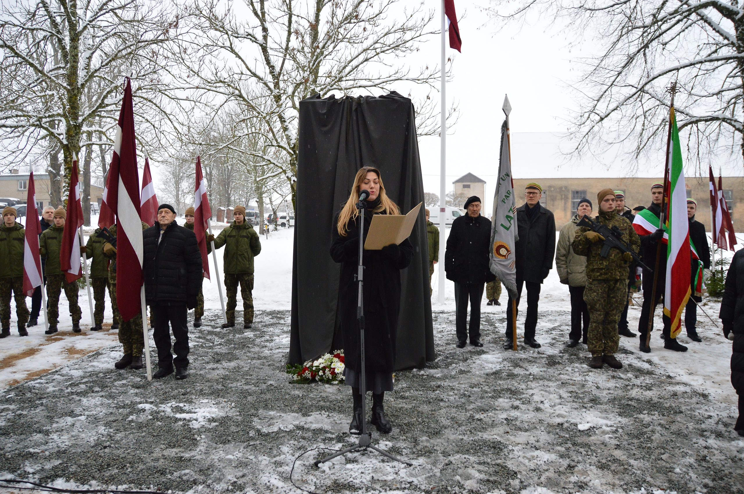 “Ziemassvētku laiks mūsu tautas brīvības cīņu vēsturē ir īpašs laiks. Mēs godinām Pirmajā pasaules karā bojā gājušos strēlniekus, mēs atceramies un pieminam tos latviešu karavīrus, kas Otrā pasaules kara laikā Kurzemes Ziemassvētku kaujās atdeva savas dzīvības, cīnoties sirdī un prātā par Latviju, bet svešu valstu karaspēkā. Pirms teju 80 gadiem, tumšajos okupācijas laikos, kad šķita, ka brīvības dzirksts ir gandrīz apdzisusi, mūsu nacionālie partizāni uz 24 stundām spēja atjaunot Latvijas valsti mazā teritorijā. Par to mēs viņiem sakām paldies un šodien atklājam pieminekli, lai godinātu viņu piemiņu un atgādinātu par mūsu tautas brīvības alkām,” uzsver Valsts prezidents Edgars Rinkēvičs.